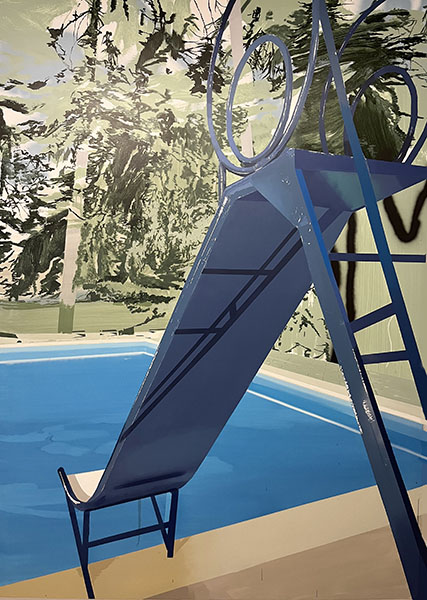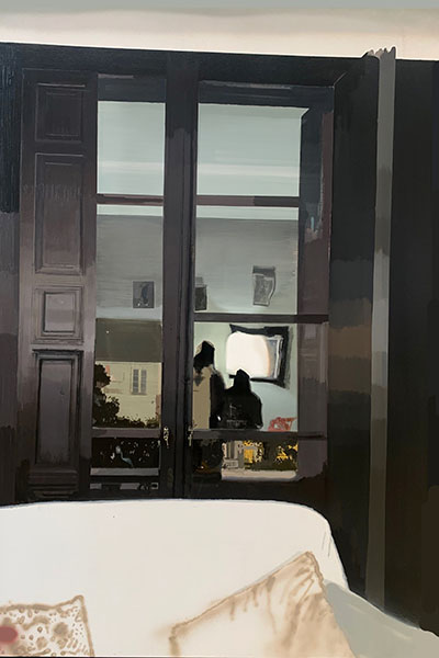 Un despliegue de recursos desde una estrategia fría que concede el espacio justo al accidente, evitando conflictos y correcciones para conseguir un acabado que dota de sofisticación a su trabajo. Santa Olalla no cesa de hablarnos y reflexionar sobre la propia pintura y su facultad narrativa. A la vez, nos interroga sobre la capacidad evocadora de lo visual y sobre la responsabilidad que compartimos a la hora de interpretar nuestra realidad frente a la ambigüedad y la indeterminación.